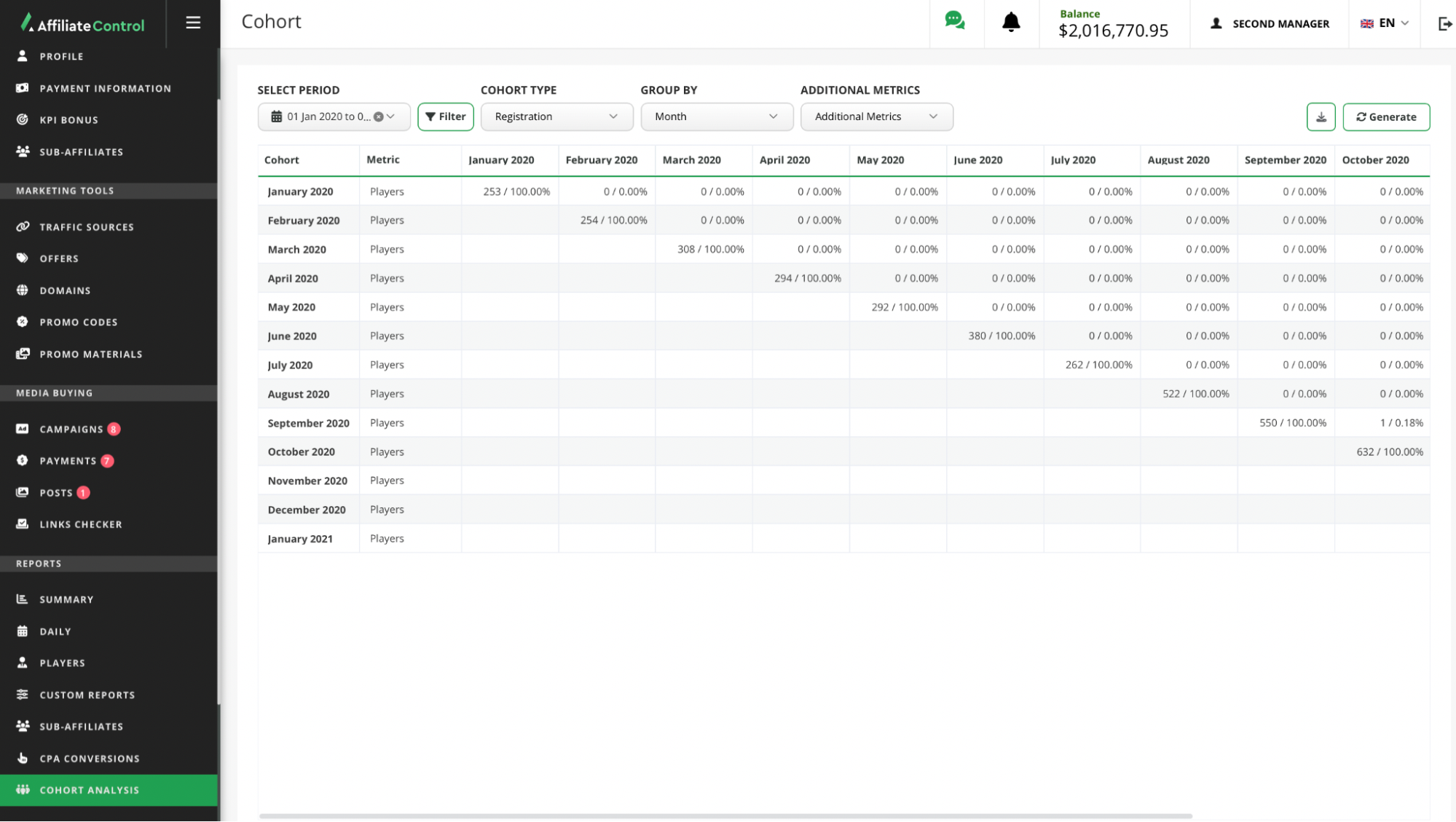 - Traffic Source. Generates a report on players who acquired through the selected traffic source.
